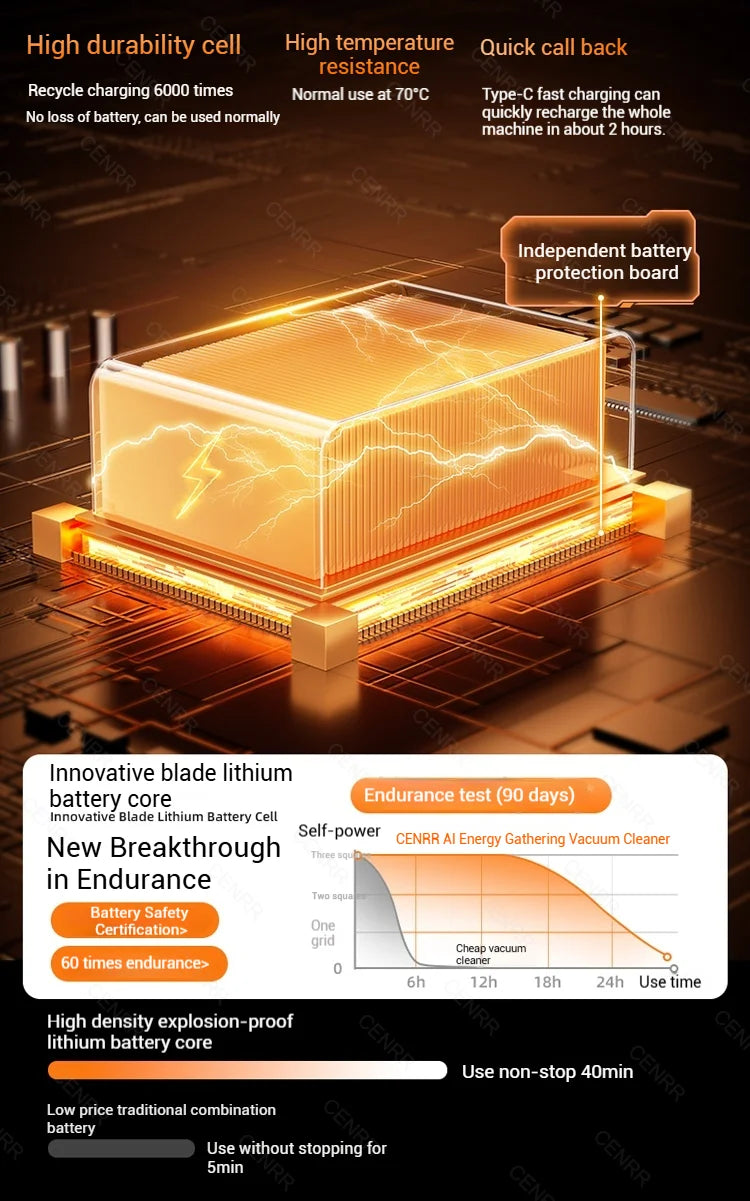 O Aspirador Multifuncional CENRR foi desenvolvido para tornar a limpeza simples, rápida e eficiente. Com motor brushless de alta potência, aspiração de 998000 PA e função de sopro, este aspirador portátil e sem fios alcança cada canto do carro com facilidade. A bateria de lítio recarregável (3 x 2000 mAh) garante autonomia suficiente para várias sessões de limpeza, enquanto o cabo de carregamento Type-C permite recargas rápidas e práticas.