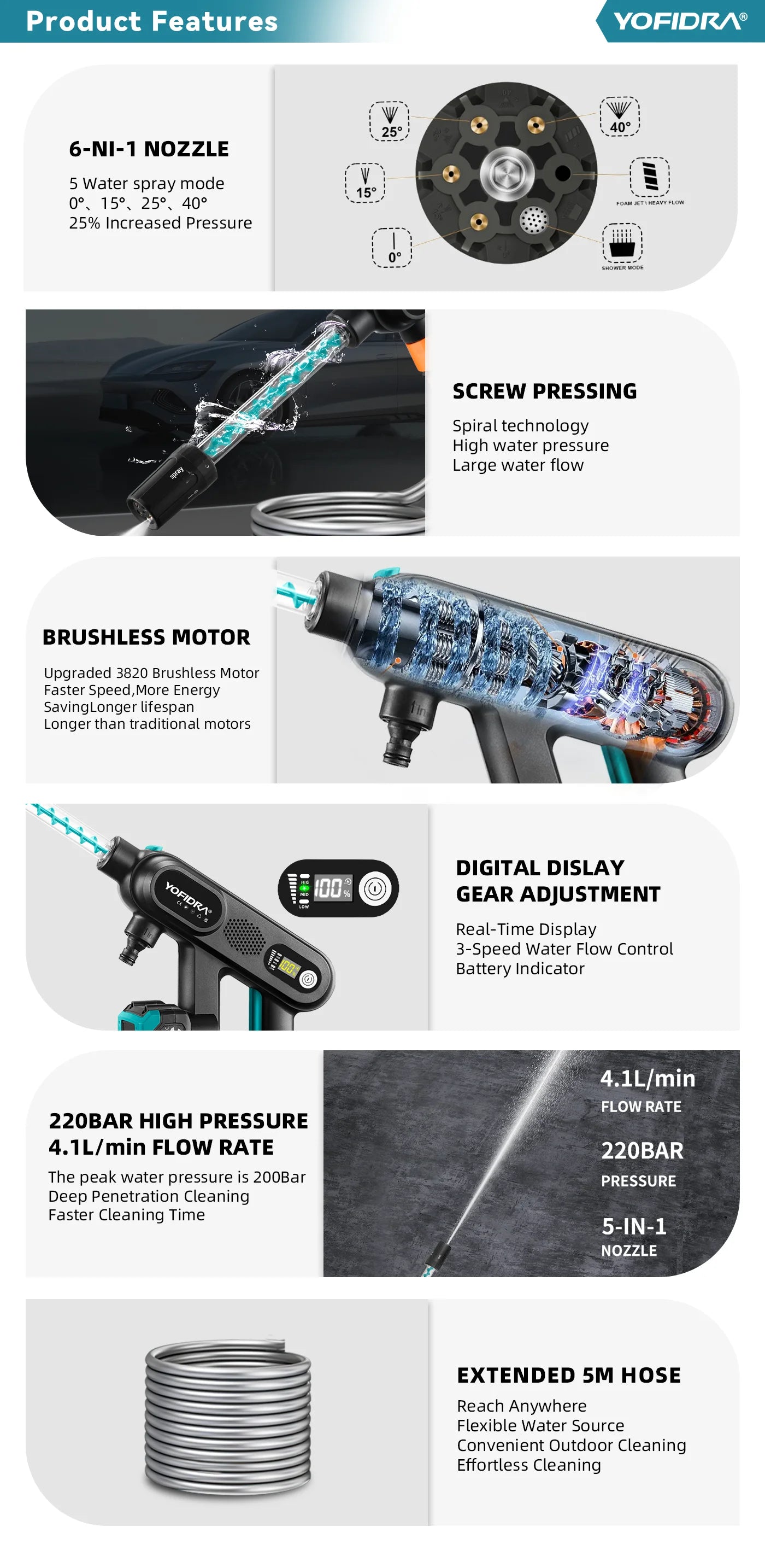 Yofidra 220Bar – Lavadora de Água Elétrica Sem Fios